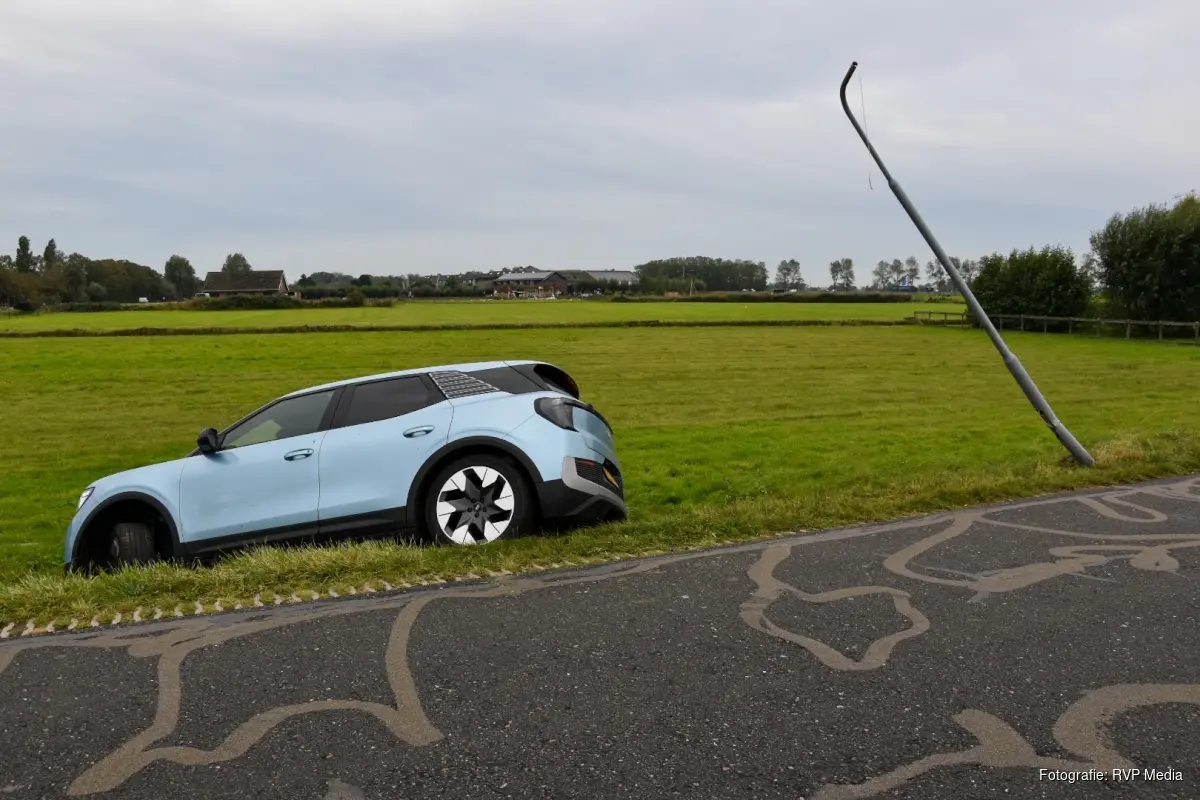 Daardoor was de weg tijdelijk afgesloten. De beschadigde lantaarnpaal zal worden gerepareerd door de gemeente.