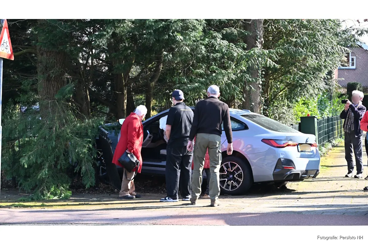 CASTRICUM - Op de Van Oldenbarneveldweg in Castricum is zondagmiddag rond 14.10 uur een auto tegen een boom gebotst. Door de klap raakte het voertuig van de weg en kwam uiteindelijk tot stilstand in een tuin.