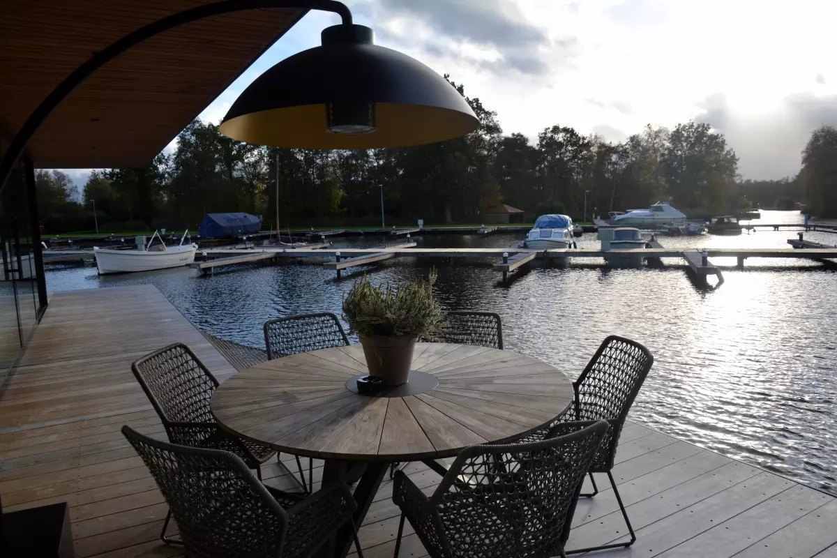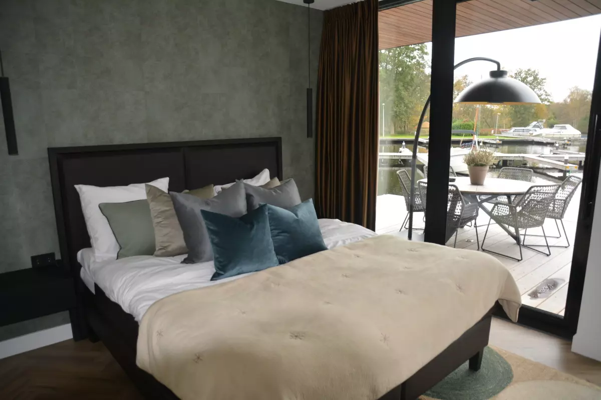 Moe van alle indrukken en de gezonde buitenlucht kost het vervolgens weinig moeite om in dromenland te belanden in de magnifieke slaapkamer en de volgende ochtend heerlijk wakker te worden in een oase van rust. Hierbij kan je ook vanuit de slaapkamer zo het terras oplopen. Hoewel al november is het deze ochtend een heerlijke rustige dag op het water en hoor je in de verte alleen de vele vogels in dit gebied. Terwijl één van ons een hengeltje uitgooit op het buitenterras besluit de ander een flinke ochtendwandeling te maken en dan kan prima met 'De Wijde Blik', een deel van het Loosdrechtse plassengebied om de hoek. Na een wandeling van bijna 9 kilometer is er opnieuw een verrassing als er bij terugkomst een heerlijke ontbijtmand voor de deur staat waarin werkelijk niets ontbreekt.