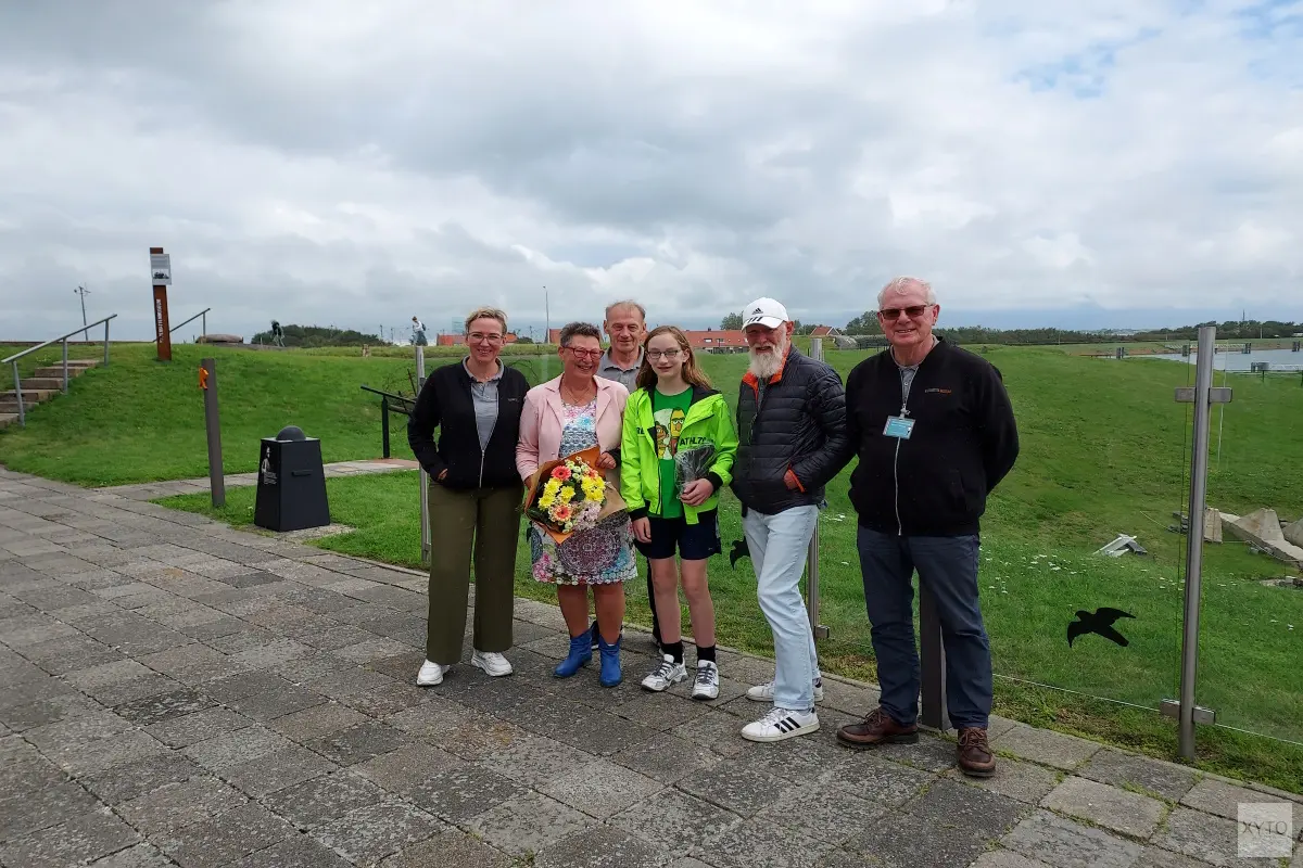 Tije Smit uit Borgercompagnie was tot zijn grote verrassing de gelukkige. Samen met zijn opa Anne Jan Schaper en oma Carla van der Zwaag uit Peins, waar hij een paar dagen logeert, bezocht hij het museum.