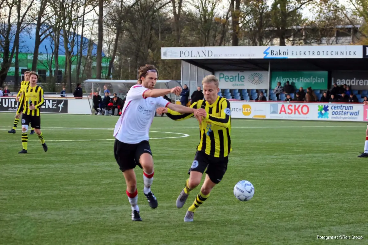 Op Sportpark Egmonderhout gaf Alcmaria de koploper een helft lang goed partij, maar na de rust sloeg de ploeg van trainer Willem Zeijlmans toe. Nadat Stijn Beentjes de score had geopend stelde Tom Adrichem met twee doelpunten de zege veilig voor de Akersloters. In de slotfase mocht Alcmaria nog wel het eerste doelpunt op eigen veld noteren via Fatih Adiyaman: 1-3.